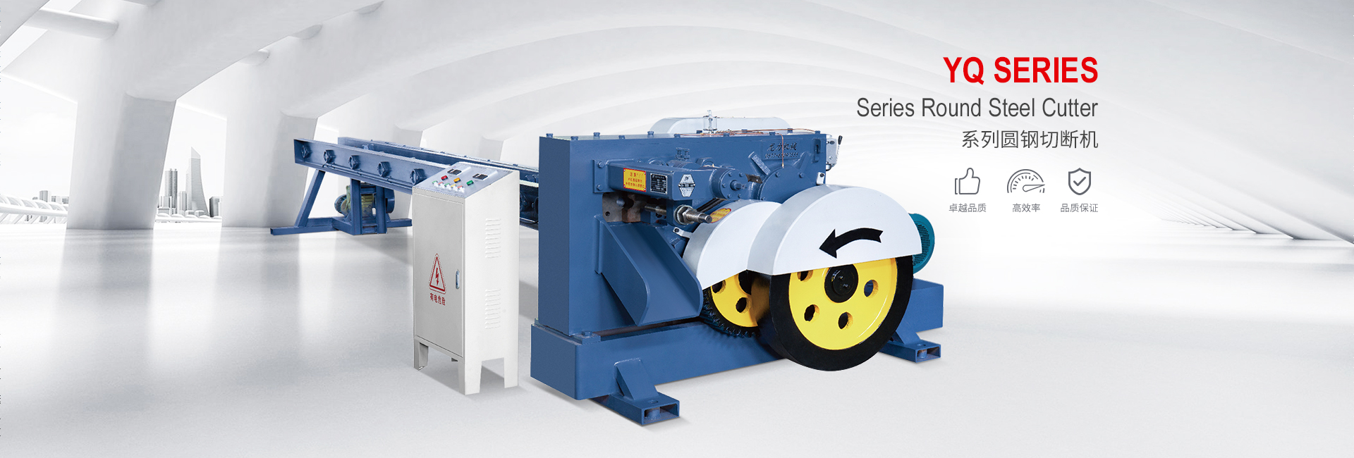 主要特點:YQ系列圓鋼切斷機是一種應用較為廣泛,且結構簡單,操作方便的圓鋼切斷機;該機型的機體是用鋼板焊接而成,使該機型更加堅固耐用。
